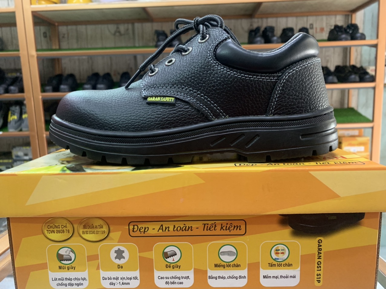 - Là giày bảo hộ cao cấp, chất liệu da, vải bền bỉ và an toàn.