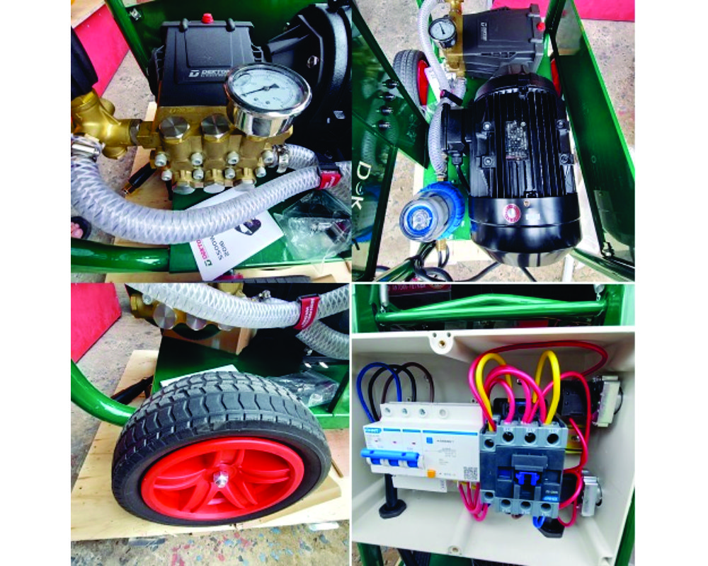 - Công suất : 7500w - Điện áp : 380v/50hz (3 FA) - Lưu lượng: 16 lít /phút - Áp suất tối đa: 3625 PSi - Dây chịu áp lực: 15m - Súng dài: 110mm - Tặng kèm: 4 Bép xịt